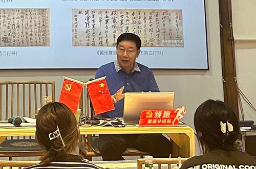 (边保华委员为学员们带来了现场书法教学增强文化自信)